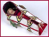 ![]() These Shoshone Indian baby dolls are made of buckskin and come in miniature beaded cradleboards just like the kind real Indian babies traveled in. |