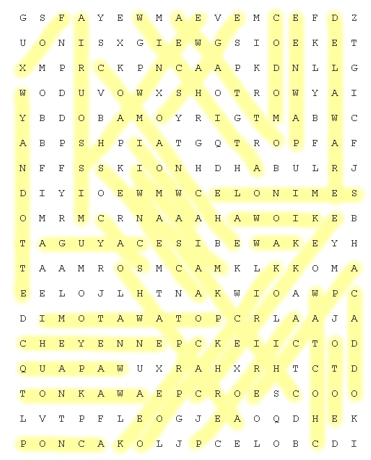 Oklahoma Wordsearch Solution